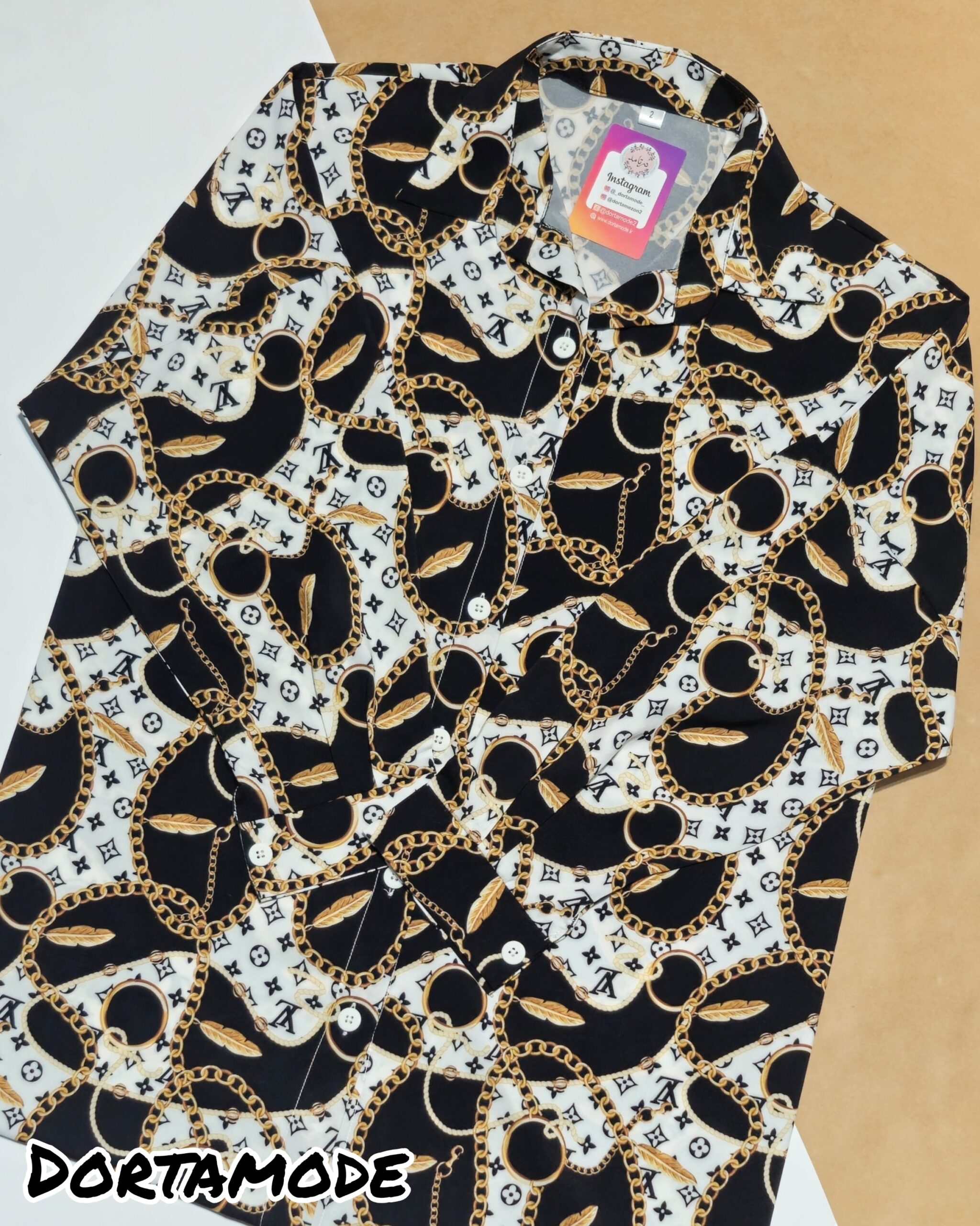 شومیز جلو دگمه طرح زنجیری طلایی