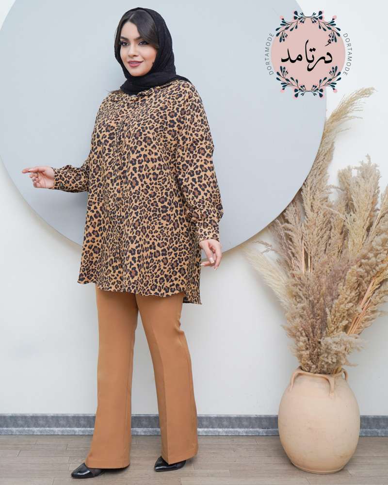 تناسب و فیت عالی شومیز کاملس پلنگی برای بانوان سایز ۴۸ تا ۵۸
