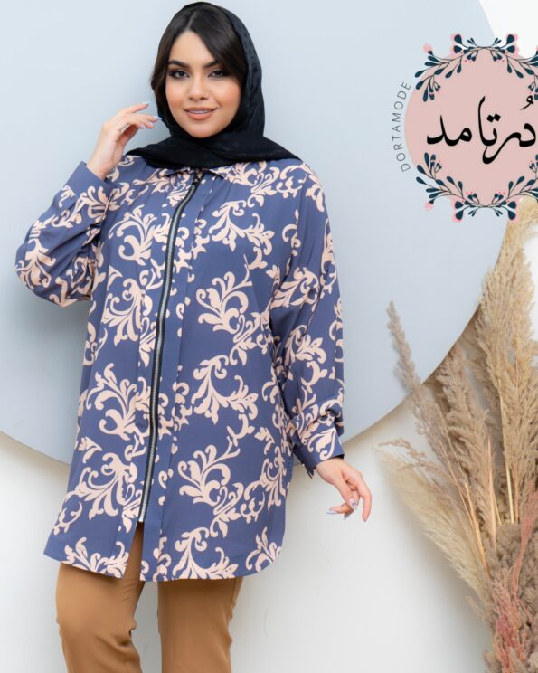 شومیز سایز بزرگ جلو زیپ دار،طرح داماس